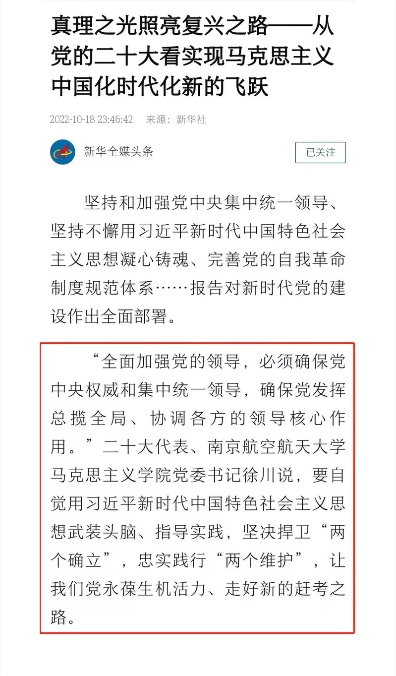 新华社:《真理之光照亮复兴之路——从党的二十大看实现马克思主义中国化时代化新的飞跃》