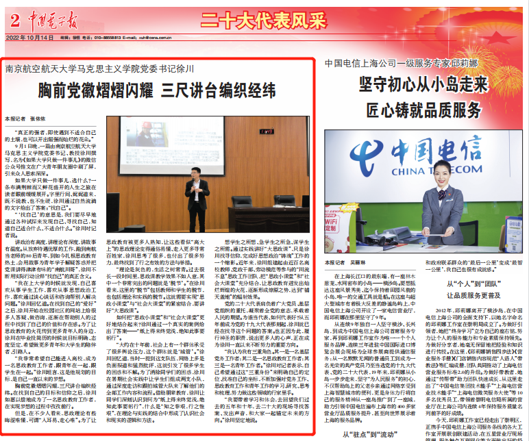 中国电子报:《二十大代表风采丨徐川:胸前党徽熠熠闪耀,三尺讲台编织经纬》