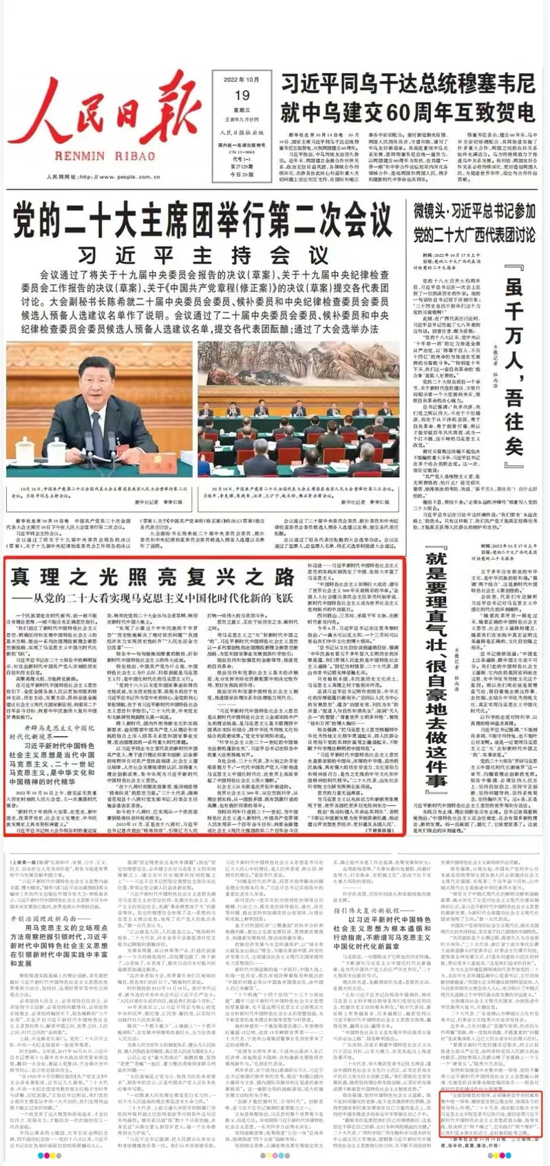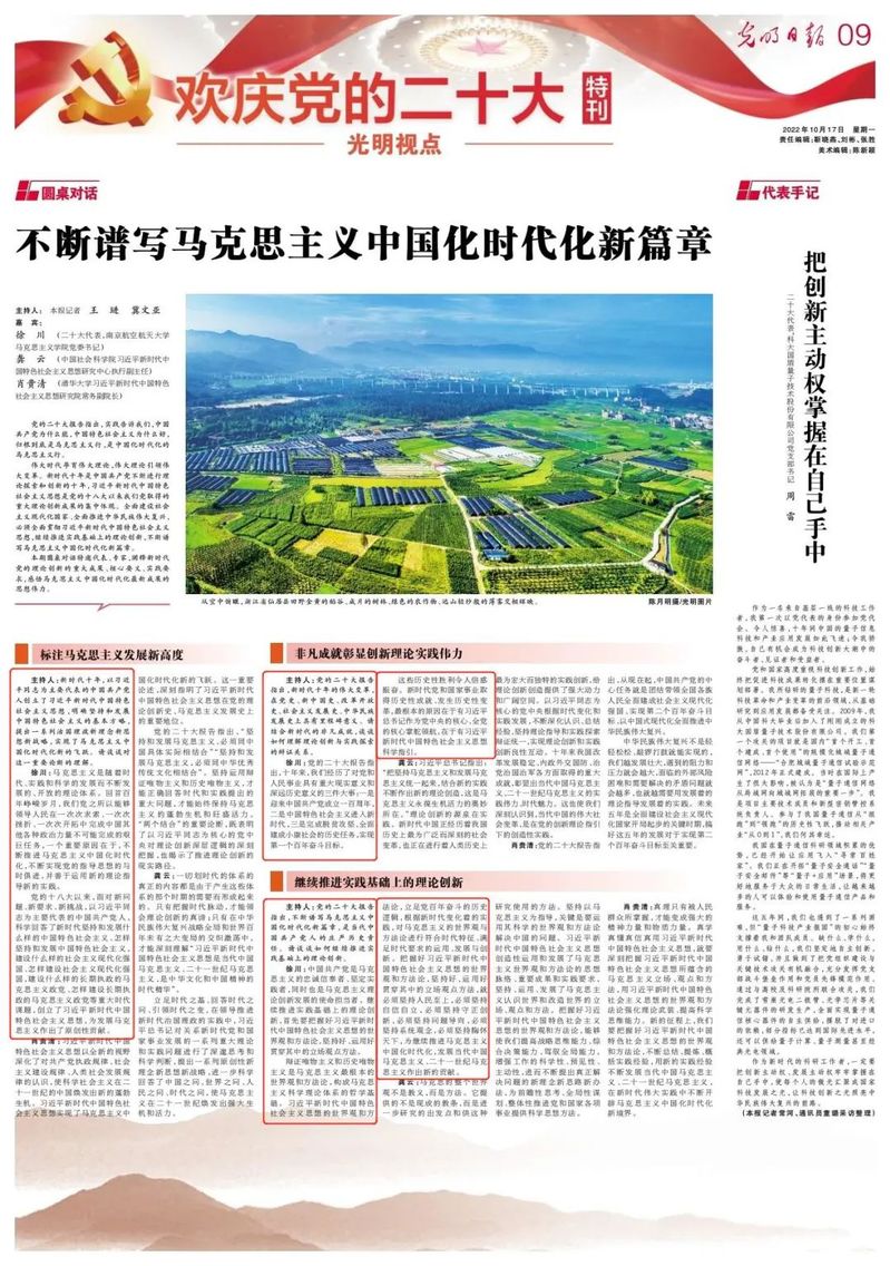 人民日报:《真理之光照亮复兴之路——从党的二十大看实现马克思主义中国化时代化新的飞跃》