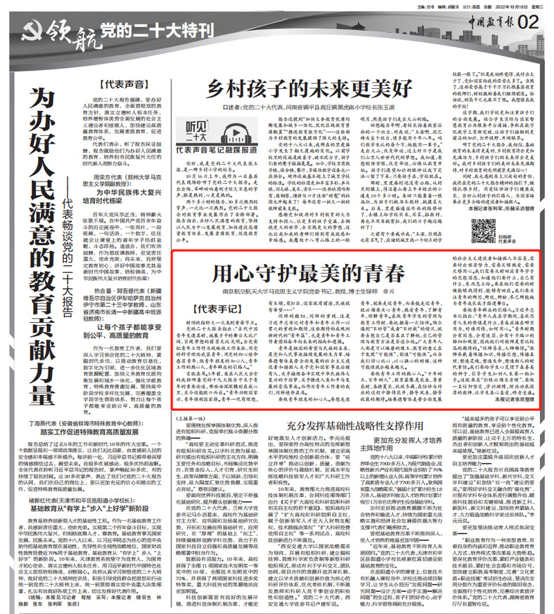 中国教育报:《用心守护最美的青春》