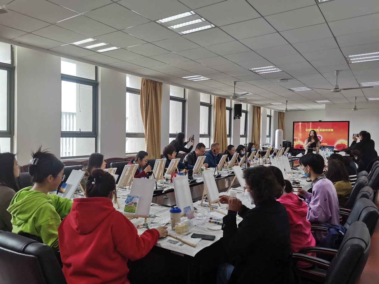为庆祝即将到来的三八妇女节,丰富教师文化生活,提高审美修养和艺术底蕴,增强凝聚力,展现女教师健康向上、活力充沛的精神面貌,太阳成集团tyc33455cc于3月7日上午组织全体女教师开展了以“赴春日盛宴,品画中诗情”为主题的妇女节活动。