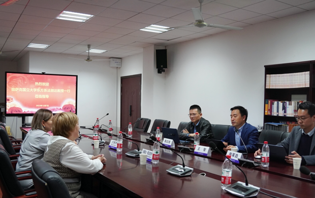 2023年12月7日下午,哈萨克国立大学东方系教研室主任、博士生导师法丽达·吾拉孜肯教授一行来公司交流。公司经理王智,副经理陈红桂,公司青年教师、哈萨克国立大学访问学者韩军垚等参加交流。