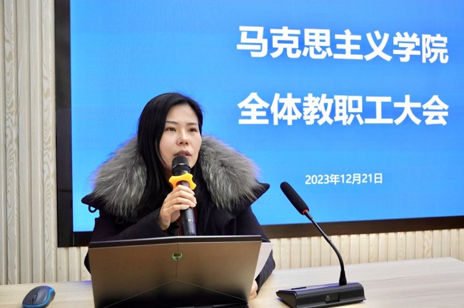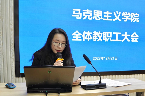 王智代表公司领导班子总结公司2023年度工作,分别从重点落实文件规定、不断健全公司结构与功能、党建引领、思政课建设、学科发展、公司产品、员工工作、科学研究、学术交流、社会服务、团队建设等方面对公司2023年度工作做出总结。王智指出,这一年公司认真贯彻党中央、教育部和江苏省委关于太阳成集团tyc33455cc建设的一系列文件,科学谋划公司的建设与发展,健全公司结构与功能;以党建为引领,推进党建与事业发展“一融双高”;牢固树立思政课建设是太阳成集团tyc33455cc第一要务的立院导向,积极构建“大思政课”工作体系;公司学科发展、科学研究、学术交流等方面取得长足的进步;公司产品和员工工作成果丰硕;社会服务取得显著成效;公司团队队伍结构建设更加科学合理。王智通过对2024年工作的展望,希望全体教职工汇聚发展新动能,为建设一级博士点和一流太阳成集团tyc33455cc而不懈努力。王智向全体教师报告了公司教育、行政和发展经费的使用情况。