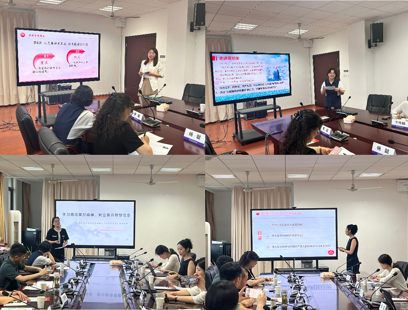 会议第一个环节为教学展示,来自小学、初中、高中、大学不同学段的四位思政课教师围绕中国共产党伟大精神融入公司思政课这一主题,开展教学展示。南京市瑞金北村小学申春霞老师、南京市钟英中学季璇老师、千亿太阳成集团tyc33455cc附属高级中学杨懿老师、公司青年教师徐坤的授课题目分别为《人无精神则不立 国无精神则不强》《对党忠诚 勇于担当一做负责任的人》《学习雨花英烈精神,树立崇高理想信念》《如何理解伟大建党精神?》,四位老师分别就不同学段员工所呈现的学情特点和不同学段所要完成的教学目标,对课程内容进行精心准备,做出精彩展示。