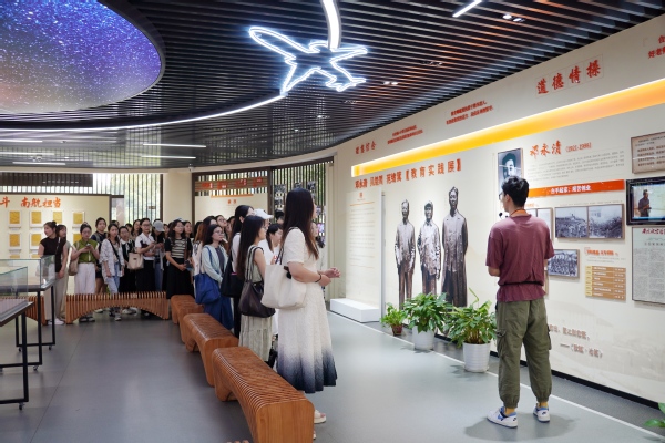 在校史馆,同学们深入学习南航建校70多年的峥嵘校史。讲解员借助实物、图片、影像等资料,向同学们生动地介绍了南航在党建引领、人才培养、科学研究、社会服务等方面的办学成就……