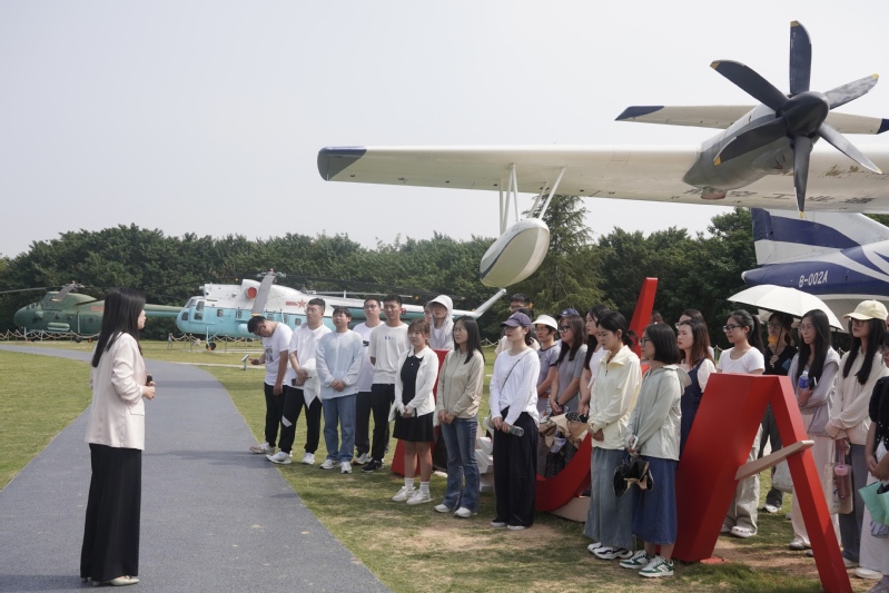 在参观结束后,何畏为24级新生在户外进行了一堂生动的“开学第一课”,她对新同学的到来表示欢迎并与大家热情交流,简要介绍了公司的历史沿革、校园文化、“三航”特色等,让同学们深刻地感悟到南航人航空报国、贡献国防的奋斗足迹,祖国至上、甘于奉献的家国情怀。